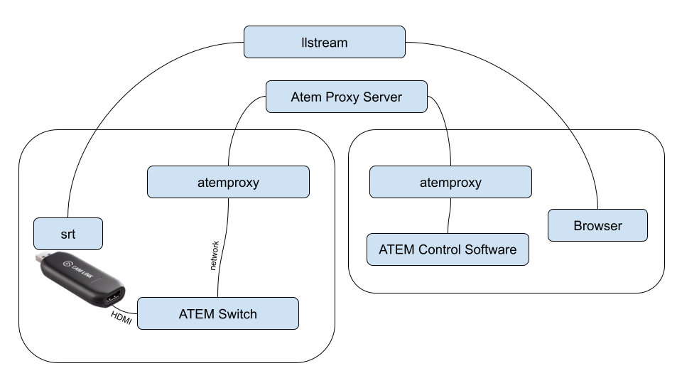 atemproxy --id john --remoteid atemproxypc --server-addr 195.201.238.25:10002 --imitate-atemExample live preview multiview in browser with ATEM on other network over 4G LTE Connection diagram
